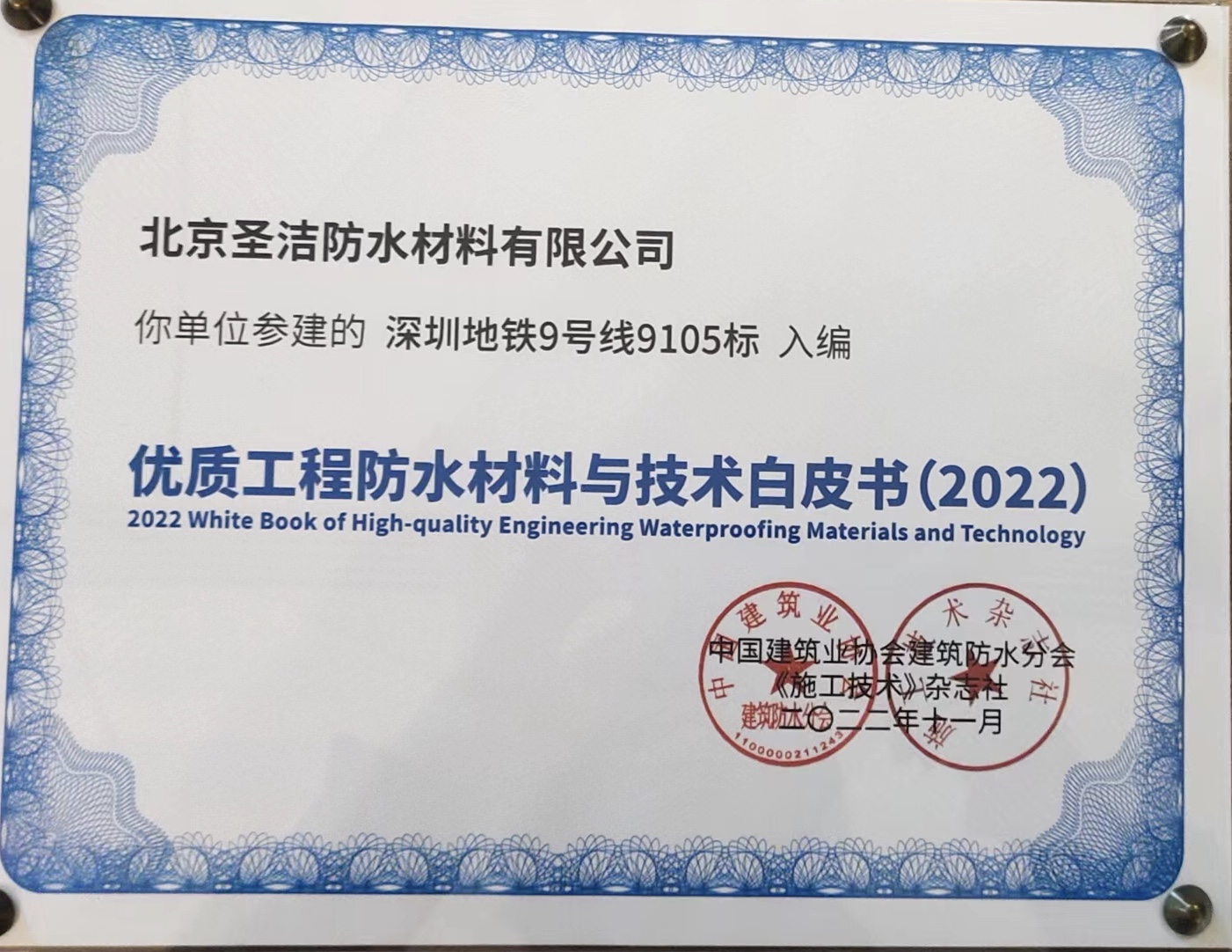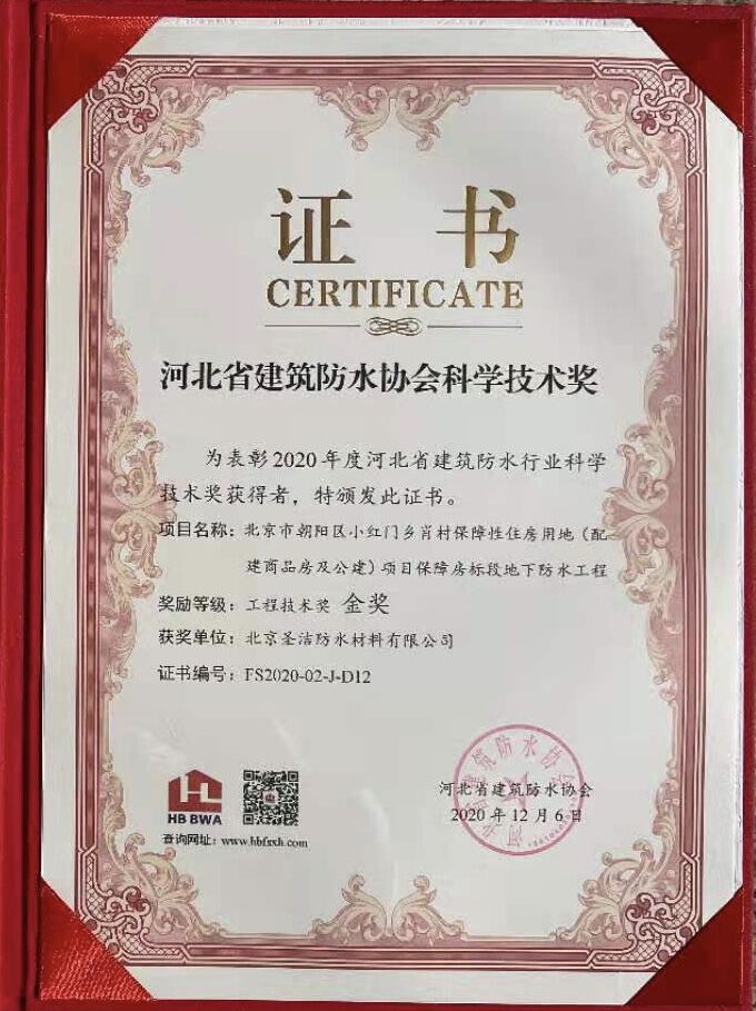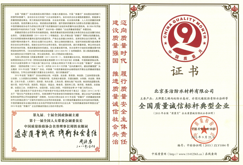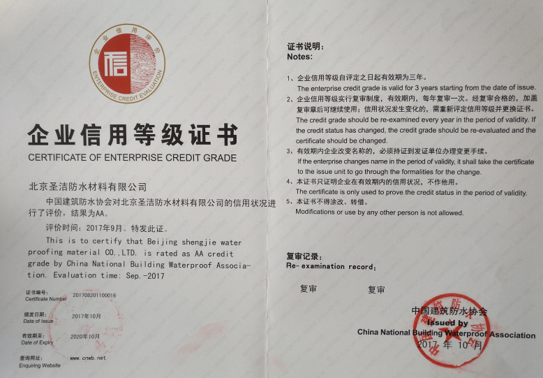 北京圣潔防水材料有限公司成立于1999年,注冊(cè)資金2.53億元。致力于系統(tǒng)解決防水問(wèn)題的探索和研究,經(jīng)過(guò)二十多年的積累與沉淀,圣潔防水已發(fā)展成為集產(chǎn)品研發(fā)、生產(chǎn)、銷(xiāo)售、施工于一體的規(guī);荆侵袊(guó)防水二十強(qiáng)企業(yè),擁有國(guó)家專(zhuān)業(yè)防水一級(jí)資質(zhì)。 圣潔防水生產(chǎn)基地占地面積2萬(wàn)平米,全體員工320人,其中施工人員280人,為員工提供五險(xiǎn)保障,公司是中國(guó)建筑防水協(xié)會(huì)常務(wù)理事單位、中國(guó)建筑業(yè)協(xié)會(huì)建筑防水分會(huì)、中國(guó)建筑學(xué)會(huì)、中國(guó)質(zhì)量檢驗(yàn)協(xié)會(huì)建材專(zhuān)業(yè)委員會(huì)會(huì)員單位,通過(guò)了ISO9001國(guó)際質(zhì)量體系認(rèn)證、ISO14001環(huán)境管理認(rèn)證。被中國(guó)建材市場(chǎng)協(xié)會(huì)譽(yù)為“全國(guó)建材系統(tǒng)質(zhì)量、服務(wù)、信譽(yù)AAA企業(yè)”。歷年國(guó)家標(biāo)準(zhǔn)《地下工程防水技術(shù)規(guī)范》、《地下防水工程質(zhì)量驗(yàn)收規(guī)范》和《屋面工程技術(shù)規(guī)范》、《屋面工程質(zhì)量驗(yàn)收規(guī)范》的參編單位,截至目前為止,圣潔防水主編或參編的標(biāo)準(zhǔn)規(guī)范及圖集已達(dá)107本。